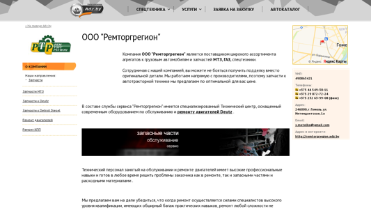| AI-анализ | This online resource is the official website for OOO "Ремторгрегион," a company that specializes in supplying a wide range of components and parts for heavy-duty vehicles, including those manufactured by MTZ, GAz, and special machinery. The company works directly with manufacturers to offer original replacement parts for Deutz engines at competitive prices. The website features a specialized technical center equipped with modern tools for servicing and repairing Deutz engines, operated by skilled technicians who can resolve issues promptly and efficiently. The company offers a comprehensive catalog of parts, both for immediate purchase and on order, and prides itself on not disappointing its customers. The website provides contact information for the company, including phone numbers and email address. |