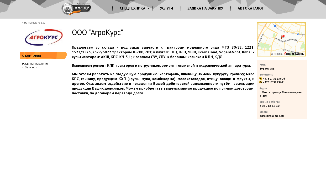 | SEO-лексика | запчасти ремонт продукцию ооо агрокурс adz 37517 тракторам договорам спецтехника техника оборудование услуги аренда кредит лизинг грузоперевозки заявка закупку автокаталог |