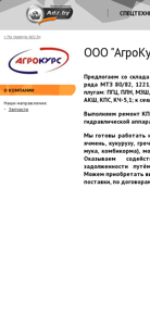 | AI-анализ | This online resource, titled "ООО "АгроКурс", is a business offering various services and products related to agriculture and farming. Keywords associated with this website include parts, repair, production, LLC, AgroKurs, Adz, 37517, tractors, contracts, special technology, equipment, services, rental, credit/leasing, and freight transport. The company specializes in the sale and repair of components for tractors from the MTS 80/82, 1221, 1522/1523, 2522/3022, K-700, 701 model ranges, as well as plows, cultivators, seeders, and borers from brands such as PGC, PLN, MZSH, Kverneland, Vogel & Noot |