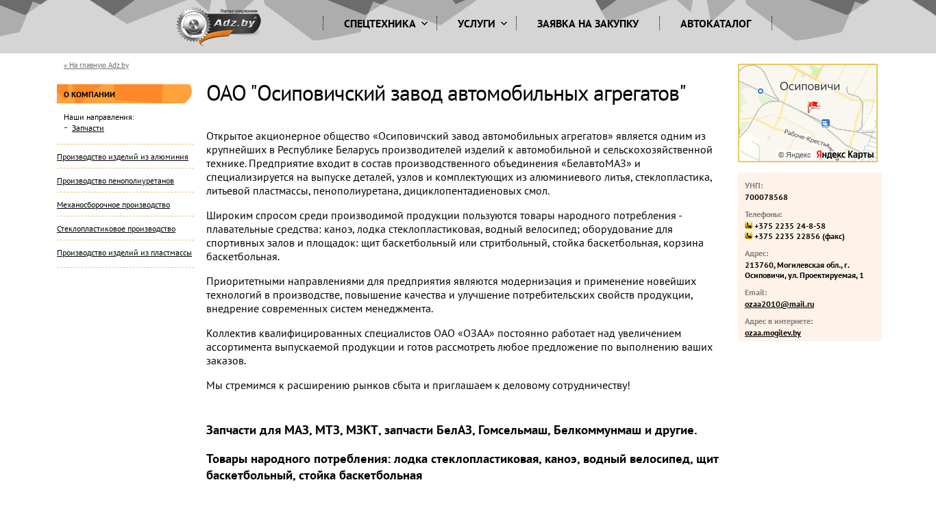 | Название / Заголовок | ОАО "Осиповичский завод автомобильных агрегатов" |