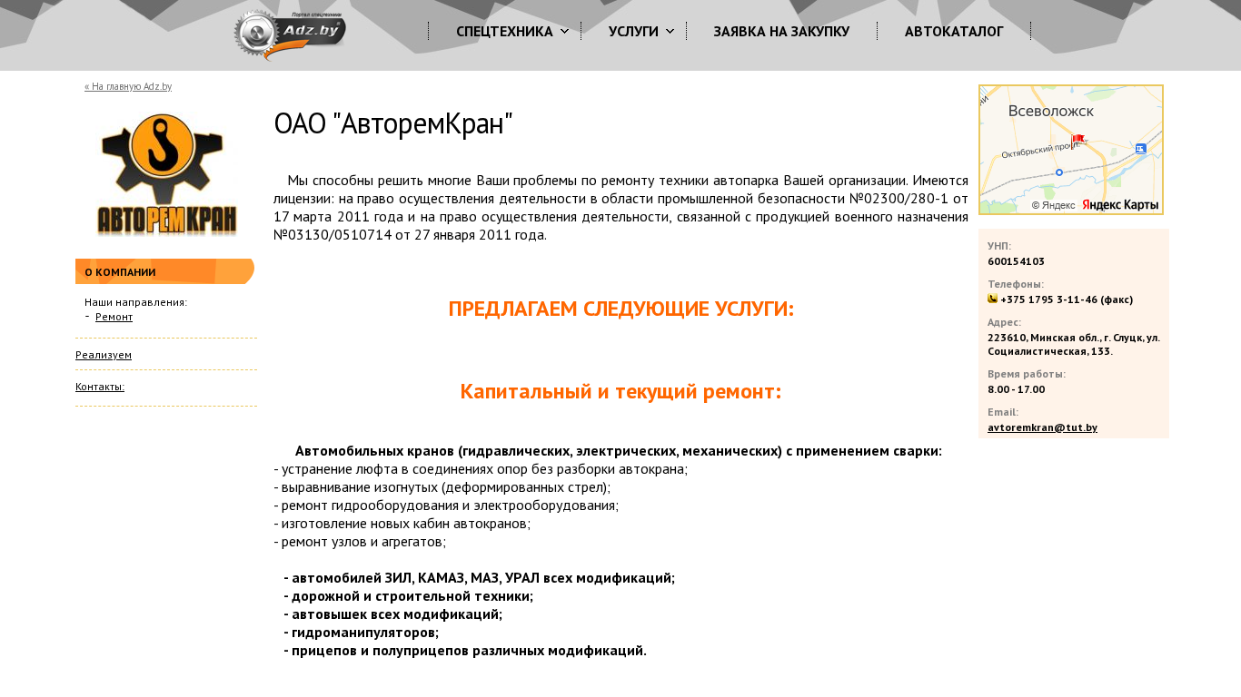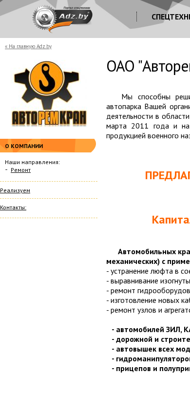| SEO-лексика | ремонт модификаций услуги adz контакты факс кранов тел 8-01795 оао авторемкран 3-11-46 133 avtoremkran tut утн спецтехника техника оборудование запчасти |