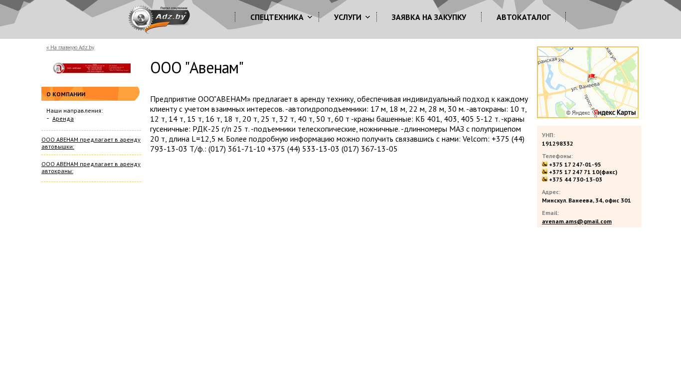 | Название / Заголовок | ООО "Авенам" |