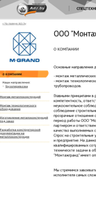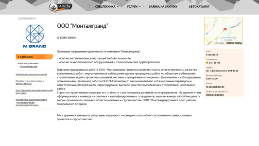 | AI-анализ | language: ru This online resource, titled "Монтажгранд" (m-grand.adz.by), is a business website operated by ООО "Монтажгранд" in Belarus. The company specializes in installation services for metallic structures and technological equipment, as well as renting and repairing specialized machinery and equipment. Keywords associated with the site include "монтажгранд," "ооо," "монтаж," "компании," "работы," "работ," "услуги," "грузоперевозки," and "adz." The site also offers credits/leasing services and provides an auto catalog. The company's main focus is on the installation of metal structures and technological equipment, ensuring competence, accountability, quality, and adherence to deadlines and building regulations. With a team of experienced |