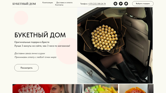 | AI-анализ | --- This online resource is called 'Original Gifts' and is an e-commerce website specializing in gift shopping located in Brest, Belarus. The most frequently used words on the site include 'original gifts', 'edible bouquets', 'sweet bouquets', 'orechovye komposicii' (orecho compositions), 'men's bouquet', 'meat bouquet', 'fruit baskets', 'gift in Brest with delivery', and 'bouquet Brest'. Users can find a range of offerings such as compositions, boxes with nuts, gifts for loved ones, meat compositions, sweet bouquets, compositions of dried fruits, gifts for children, and baskets. The site offers delivery and payment options, and contact information is provided for inquiries. The store accepts orders around the clock, with processing taking place from 1 |
