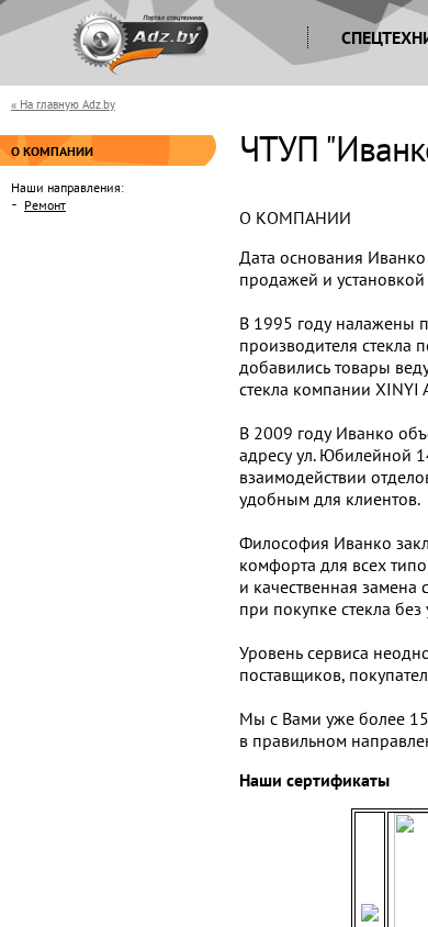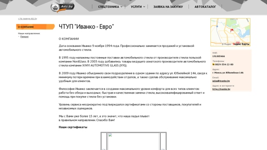 | AI-анализ | This website is for Ivanko-Euro, a Belarusian company specializing in the sale and installation of automotive glass. Established in 1994, Ivanko has been a professional in this field for over 25 years. They source their glass from Polish producer NordGlass since 1995 and added Xinyi Automotive Glass (XYG) from a leading Asian producer in 2003. In 2009, Ivanko consolidated its divisions into one building at Yubileynaya 14A, streamlining operations and enhancing customer convenience. The company's philosophy centers around providing maximum comfort for all types of clients, offering work without breaks and quick, quality glass replacement, as well as highly qualified assistance during glass purchases. Ivanko's service level has been recognized with certificates from suppliers, buyers, and independent evaluators. The |