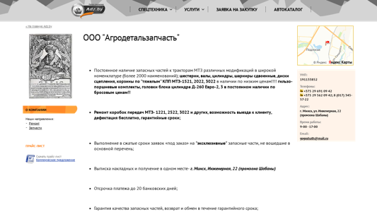 | Адрес | Агродетальзапчасть", Постоянное, наличие запасных частей к тракторам МТЗ различных модификаций в широкой номенклатуре (более 2000 |