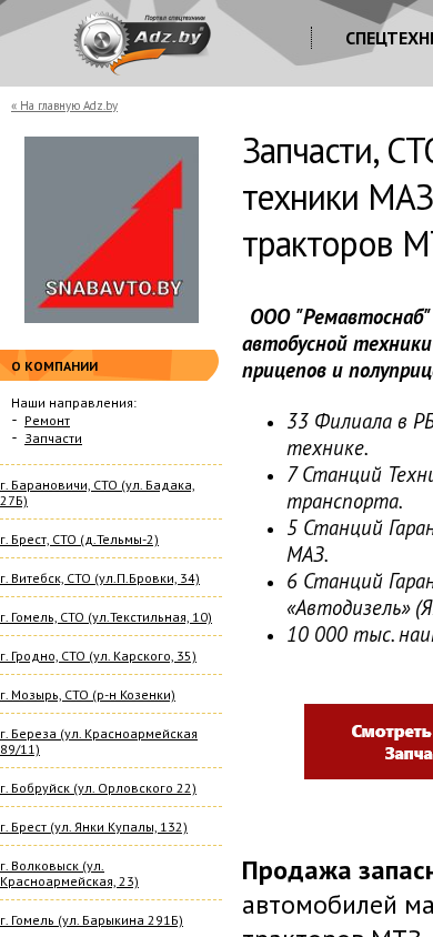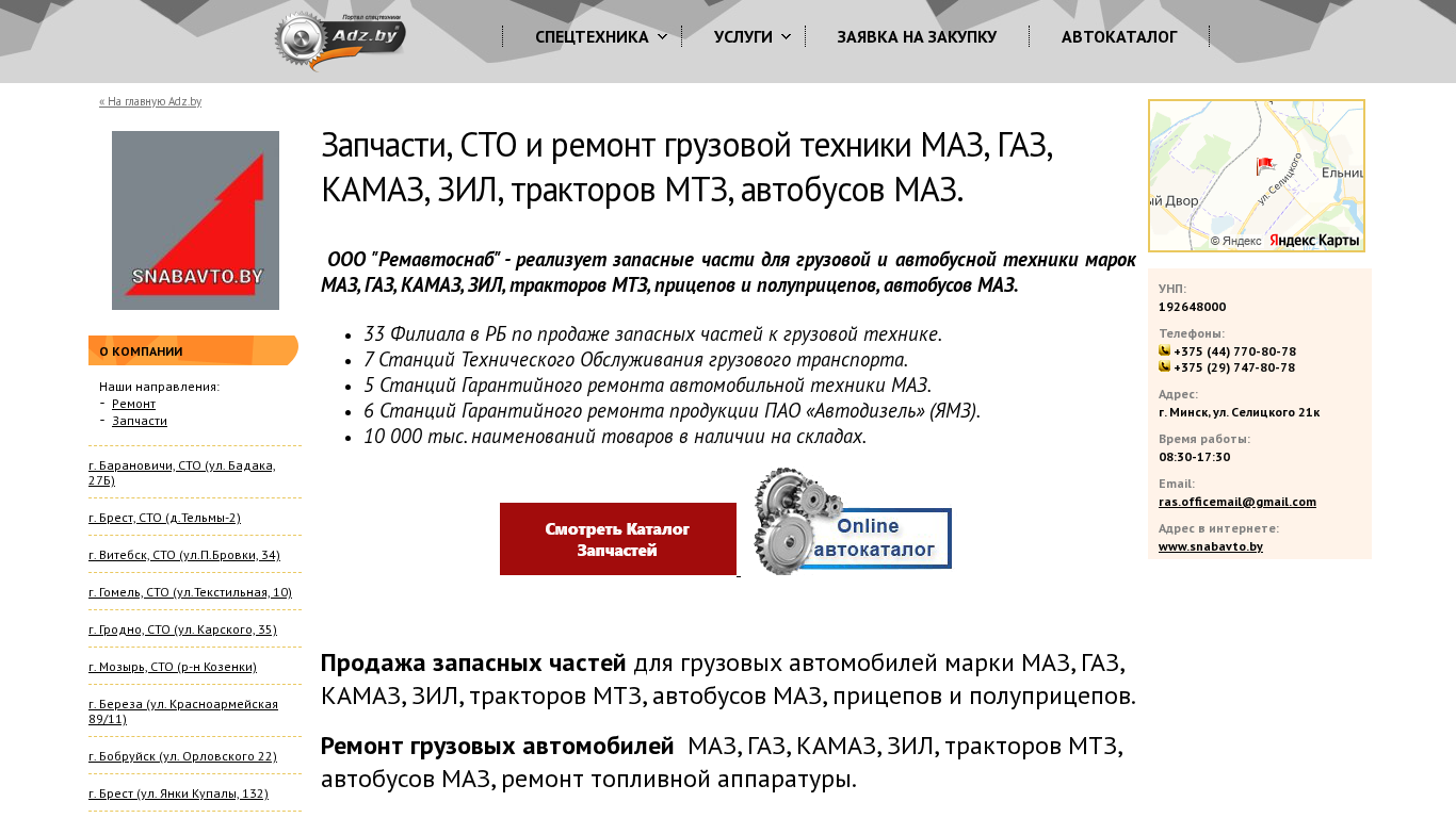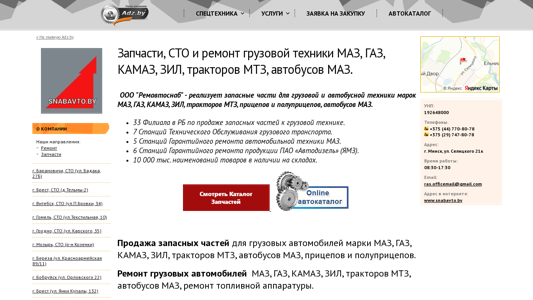 | Название / Заголовок | Запчасти, СТО и ремонт грузовой техники МАЗ, ГАЗ, КАМАЗ, ЗИЛ, тракторов МТЗ, автобусов МАЗ. |