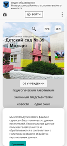 | AI-анализ | This website is for the State Educational Institution "Childcare Center No. 39" located in the city of Mozyr, Belarus. The institution offers kindergarten education for children. The website provides information about the kindergarten, including its registration number, director, contact information, and hours of operation. The institution was founded in 1992 and has a capacity for 265 children, organized into 14 groups. The main objectives of the kindergarten are to promote children's physical, emotional, and intellectual development through various educational and recreational activities. The website also mentions annual events, such as graduation ceremonies, discos, and cultural festivals. The kindergarten is part of the Education Department of the Mozyr Regional Executive Committee and is subject to the Ministry of Education of Belarus. The website also includes contact information for related organizations and their |