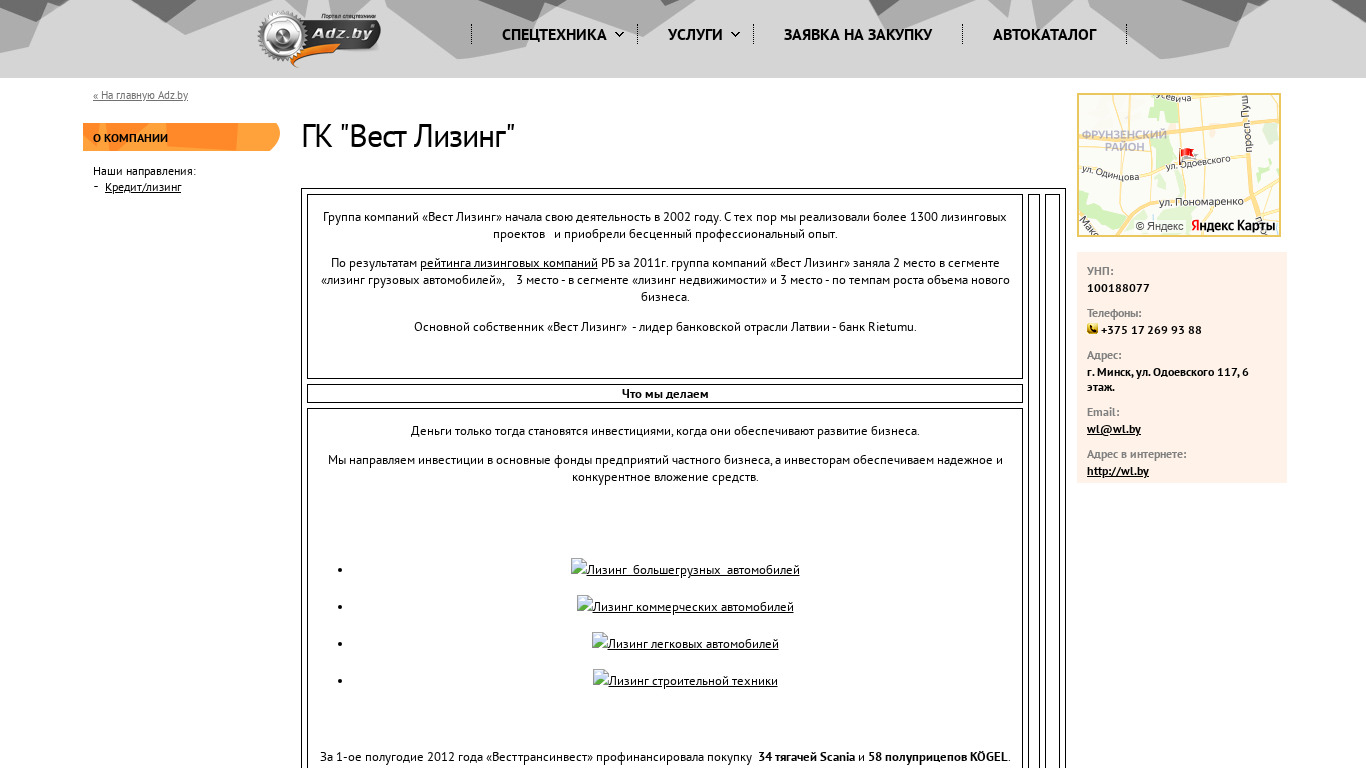 | Название / Заголовок | ГК "Вест Лизинг" |