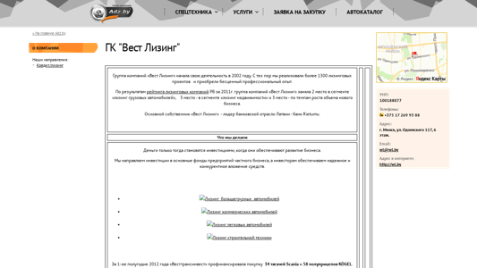 | AI-анализ | This website, titled "ГК "Вест Лизинг", is a business website that provides leasing services for various types of vehicles and equipment, including commercial, construction, and passenger cars. The company has been in operation since 2002 and has completed over 1300 leasing projects, gaining valuable professional experience. According to a rating of leasing companies in Belarus for 2011, "ГК "Вест Лизинг" ranked 2nd in the segment of leasing heavy commercial vehicles, 3rd in the segment of leasing real estate, and 3rd in terms of the growth rate of new business volume. The company is majority owned by Rietumu Bank, the leading bank in Latvia's financial sector. The website also mentions that money becomes an investment only when it contributes to business development and that the company directs investments into the |