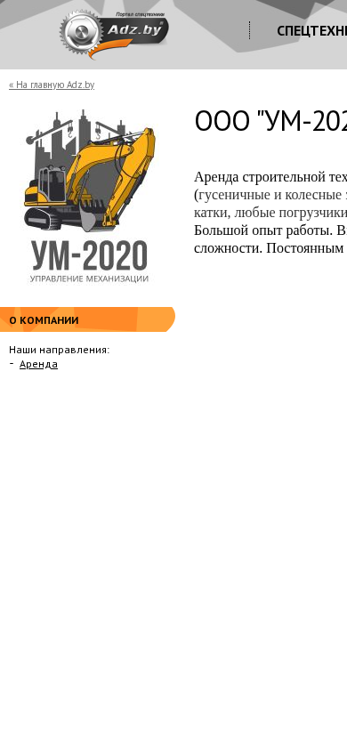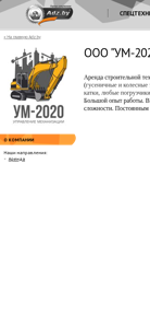 | AI-анализ | The web project "UM-2020" is a company specializing in equipment rental. The website offers a range of construction machinery for rent, including excavators, bulldozers, loaders, cranes, manipulators, scissor lifts, rollers, and tampers. The company has over 30 units in its fleet, both wheeled and tracked. The project provides information on the company's services, contact details, and operating hours. The site is part of the Adz.by network and is accessible at um2020.by. |