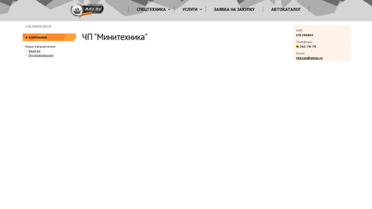 | AI-анализ | The portal "ЧП "Минитехника" is a business website focusing on the rental and sales of mining equipment, special technology, vehicles, and related parts and services. The site includes sections for repair, credit/leasing, transportation, and a request form for purchasing. The company is registered under the Unified State Register of Legal Entities with the identification number 191286869. The contact information provided includes a phone number and email address. The website is hosted on the Adz.by platform. |