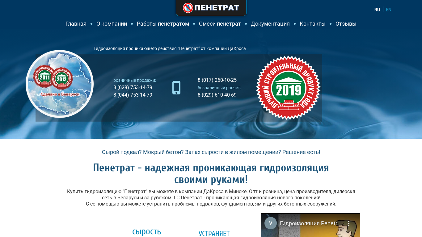 | Название / Заголовок | Гидроизоляция в Минске: купить проникающую гидроизоляцию бетона Пенетрат |