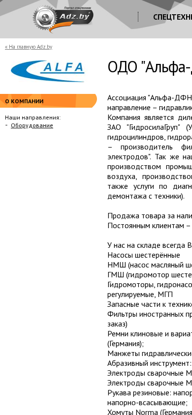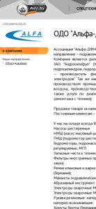| AI-анализ | The web project "ОДО "Альфа-ДФН" (alfadfn.by) is a business firm in Belarus specializing in technical equipment and services. The company has been operating for over 15 years and focuses on hydraulics. It is a dealer for leading manufacturers such as ZAO "ГидросилаГруп" (Ukraine) and SОАО "Дифа" (Belarus), providing a range of hydraulic equipment including pumps, motors, cylinders, valves, and filters. The firm also offers services for diagnosing and setting up hydraulic systems without dismounting them. Additionally, it produces and sells industrial ventilation and air conditioning systems, and high-pressure hoses. The company accepts cash payments in any bank and offers credit/leasing and transportation services for regular clients |