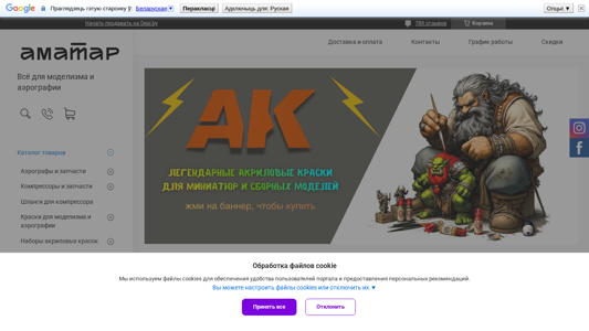 | AI-анализ | This website is an online store for "Ама́тар - всё для моделизма и аэрографии" (Amatar - everything for modeling and airbrushing). It offers contact information, products, and services related to the company. The keywords associated with the website include "моделизма" (modeling), "аэрографии" (airbrushing), "красок" (paints), "краски" (paints), "наборы" (sets), "375" (Belarusian phone code), "jas" (likely a brand), "00-20" (possibly a product code or size), "vallejo" (a brand), "кисти" (brushes), "запчасти" (spares), "оплата" (payment), "работы" (works), "ру |