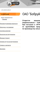 | AI-анализ | The website is for Open Joint Stock Company "Bobruiskagromash" (previously known as Bobruisk Machine Building Plant for Application of Fertilizers), established in 1974 in Belarus. It is one of the largest agricultural machinery producers in Belarus and the CIS countries. The construction of the factory started in November 1971 and was completed in 36 months. The first 11 experimental RZT-8 liquid organic fertilizer spreaders were produced in September 1975. In the first year, 250 units of this type of machinery were manufactured. The factory's designed capacity is 26,000 machines per year, which was achieved in 1981. Initially, the factory produced four types of machines: the RZT-8 liquid organic fertilizer spreader with a capacity |