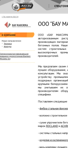 | AI-анализ | The website is for OOO "БАУ МАКСИМА," a company specializing in industrial flooring solutions in Belarus. It acts as the exclusive representative and authorized distributor of leading global manufacturers of materials and equipment for producing industrial concrete floors. The site offers a range of modern building material systems and equipment for constructing robust industrial concrete floors from top international producers. The company guarantees high-quality materials, excellent equipment, affordable prices, technical support, and consultations to partners. They also provide project management services, recommending reputable contractors in Belarus for industrial concrete flooring projects. The company frequently collaborates with major Belarusian producers of industrial concrete floors, incorporating their expertise and suggesting improvements to equipment and material manufacturers based on the Belarusian market. The products provided include steel fiber reinforcement, building wool microarmoring fiber, dry concrete strengtheners, liquid concrete strengthening |