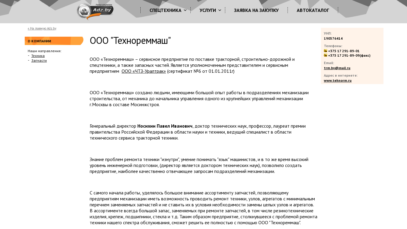 | AI-анализ | The portal OOO "Технореммаш" is a service company specializing in the supply of tractors, construction-road machinery, and special equipment, as well as spare parts. It is an authorized representative and service provider for ООО «ЧТЗ-Уралтрак», holding certificate #6 from January 1, 2011. The company was founded by individuals with extensive experience in the mechanization of construction, from mechanics to the head of a major mechanical division in Moscow's Mosinzhstroy. The general director, Pavel Nozikhin, is a doctor of technical sciences, a professor, and a laureate of the Russian government's science and technology award. His understanding of the inner workings of machinery, the ability to communicate effectively with mechanics, and a high level of engineering education allowed for the creation of a company that best meets the needs of |