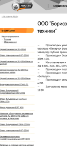 | AI-анализ | The web project "Borisovsky Zavod Gruntoreznoi Techniki" (BZGT) is a Belarusian company specializing in the production and sale of heavy machinery and equipment. The main products include universal cement excavators EC-1800, manufactured on the base of Belarusian tractors, capable of digging trenches with depths of 1.6, 1.8, and 2.0 meters. Additionally, BZGT produces and sells various types of chains for these excavators, as well as additional equipment and spare parts for other types of machinery. The company also offers a multifunctional excavator-loader EP-100, bulldozer-loader PTMs, and a front-end loader for the Belarus 921.3-2016 truck. BZGT also produces |