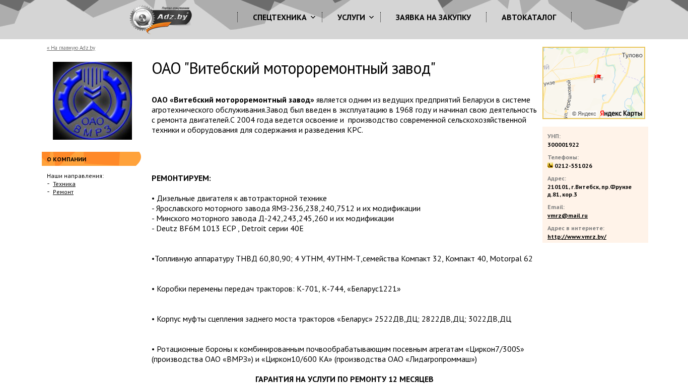 | Название / Заголовок | ОАО "Витебский мотороремонтный завод" |