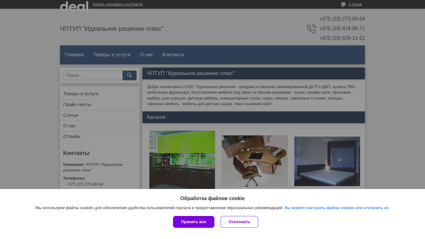 | SEO-описание | Контактная информация, товары и услуги компании "ЧПТУП "Идеальное решение плюс"" |