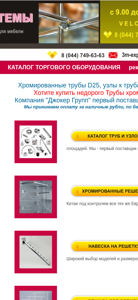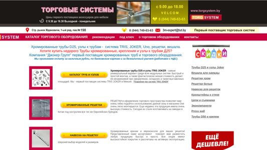 | Название / Заголовок | Торговое оборудование. Продажа в Минске оптом и в розницу. Хромированные трубы D25 - TRIS, JOKER, манекены, торсы, вешала, решетки, витрины, прилавки. - index |