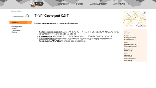 | AI-анализ | This website is for ТЧУП "Софтстрой-СДМ" and provides information about their company and offerings. The title of the website is "ТЧУП "Софтстрой-СДМ"" and the description includes keywords such as "запчасти," "тчуп," "софтстрой-сдм," "техника," "оборудование," and "адрес." The top words on the website are "запчасти," "тчуп," "софтстрой-сдм," "техника," "оборудование," "адрес," "sdm," "спецтехника," "услуги," "аренда," "ремонт," "кредит," "лизинг," "грузоперевоз |