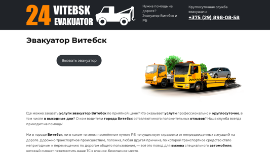 | Название / Заголовок | Эвакуатор Витебск низкие цены круглосуточно | evakuator-vitebsk-24.by |