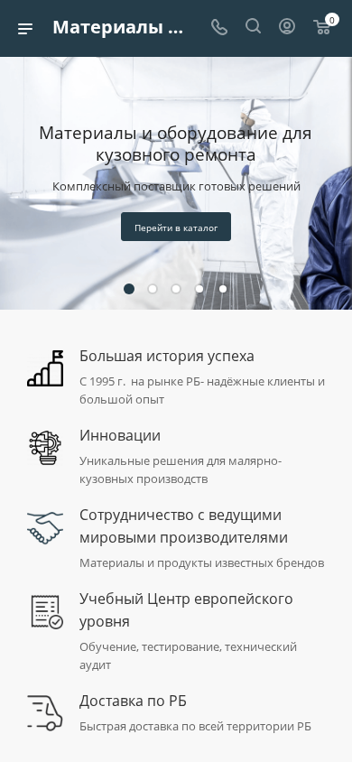 | SEO-описание | 27 лет успешной истории продаж на рынке материалов и инструментов для авторемонта Беларуси. Мы - ведущий импортёр высокотехнологичных лакокрасочных и расходных материалов для малярно-кузовных цехов, автодилерских центров, СТО |