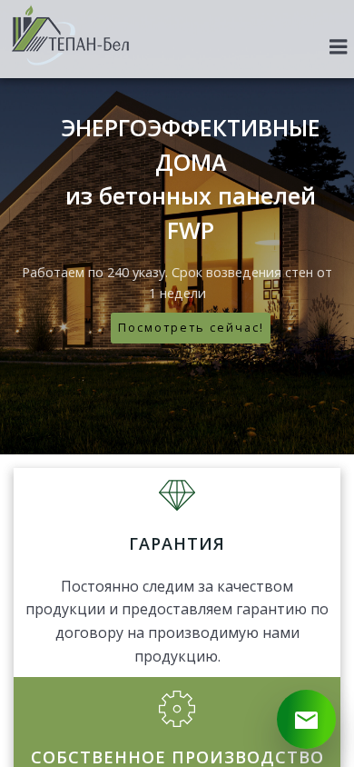 | AI-анализ | This online resource is dedicated to offering building solutions through innovative building materials, specifically focusing on insulated wall panels or FWP panels, for construction projects. The company, Tepanbel, boasts certificates and licenses, ensuring the eco-friendly, durable, safe, and energy-efficient nature of their products. The panels are produced in-house in Lepele, and interested parties can contact the company via the provided phone number or email for more information. The site includes sections on company information, certificates, partnerships, a photo gallery, frequently asked questions, product and service offerings, completed projects, and contact information. The company specializes in turnkey projects and thermal insulation of buildings. The site also features a section for inquiries and a contact form. The company's production is based on a patented technology in Belarus and Russia for the manufacture of composite panels. All products undergo necessary |