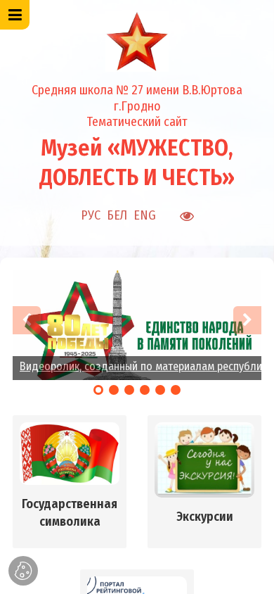 | Название / Заголовок | Музей «МУЖЕСТВО, ДОБЛЕСТЬ И ЧЕСТЬ» - Средняя школа № 27 имени В.В.Юртова г.Гродно |