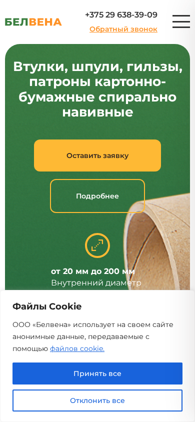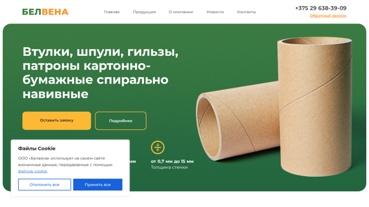 | SEO-описание | ООО БелВена занимается производством втулок картонно-бумажных с доставкой по всей Беларуси, России и иным странам СНГ. Обращайтесь по вопросам сотрудничества |