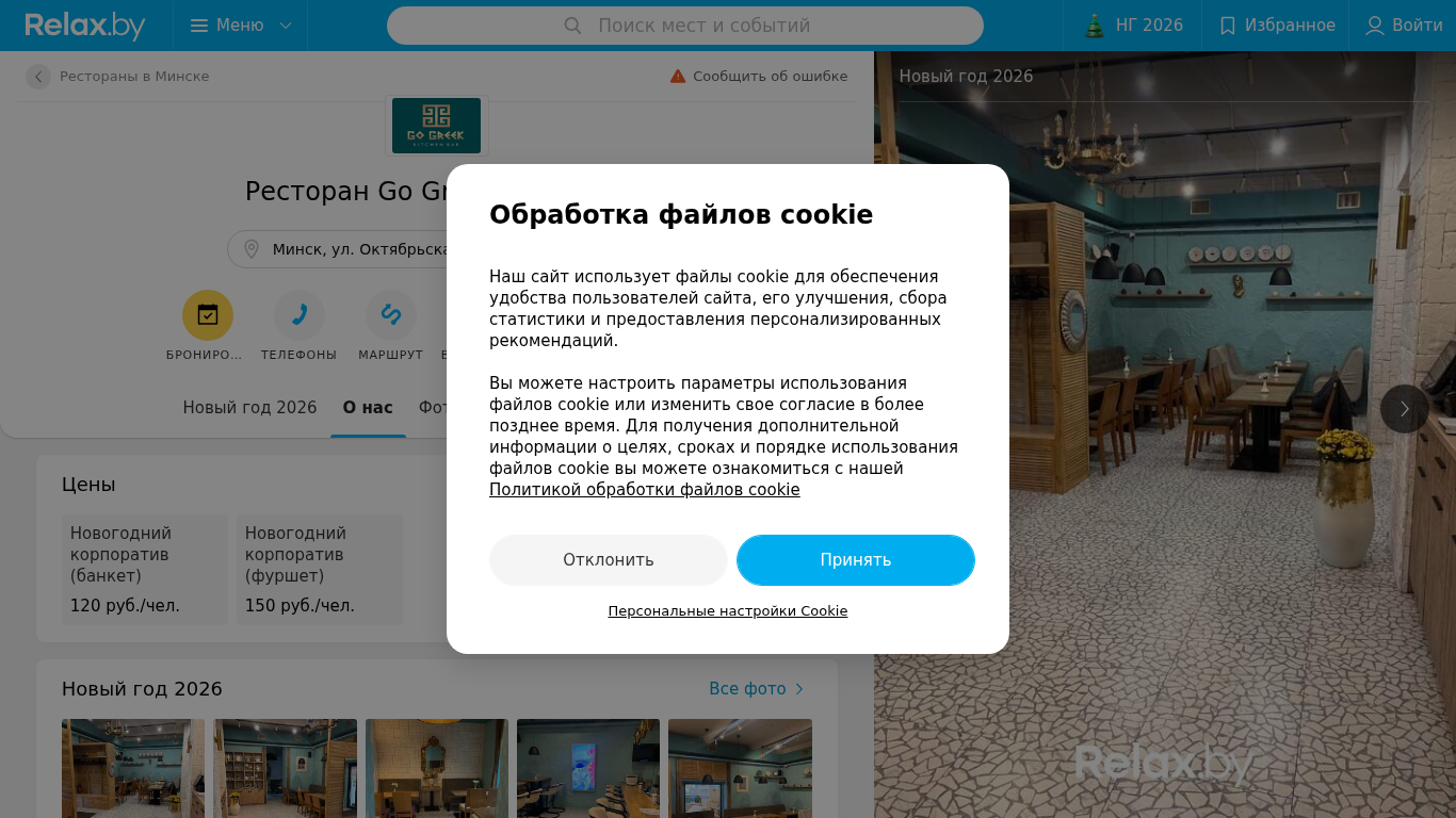 | SEO-описание | Ресторан греческой кухни Go Greek (Го Грик) в Минске – отзывы, телефоны, график работы и карта проезда на Relax.by |