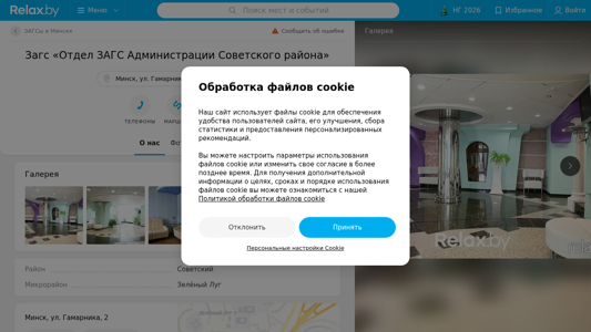 | SEO-описание | Загс Отдел ЗАГС Администрации Советского района в Минске – отзывы, телефоны, график работы и карта проезда на Relax.by |