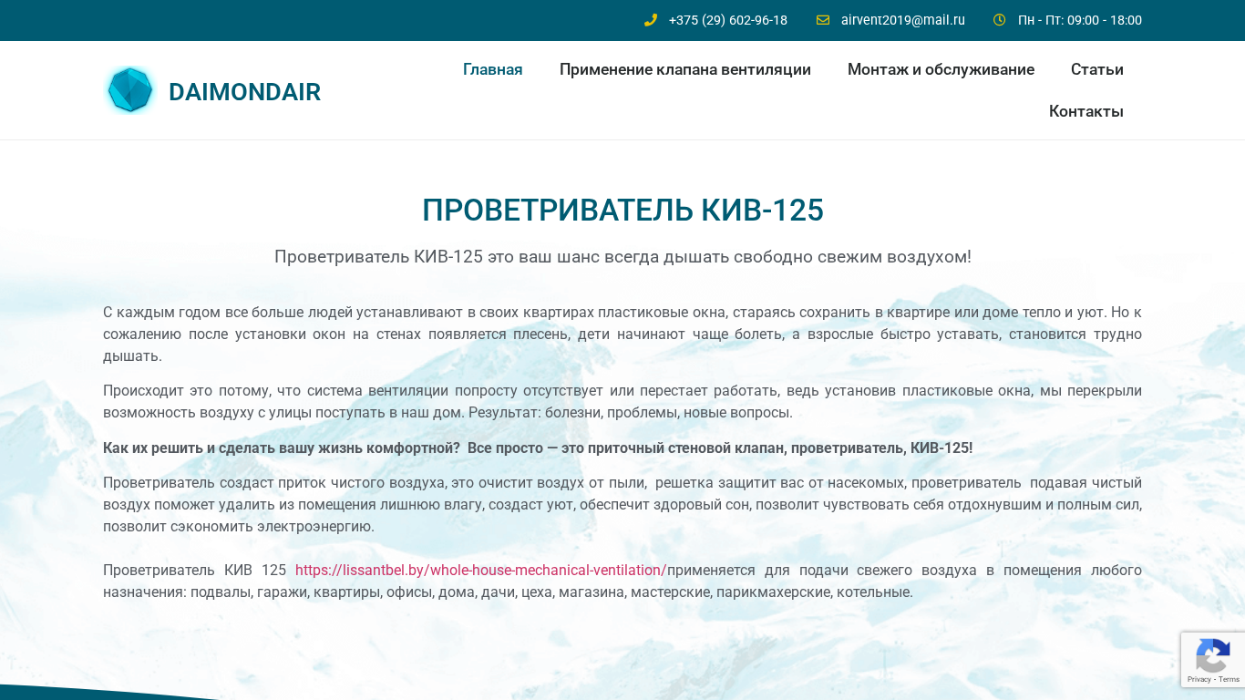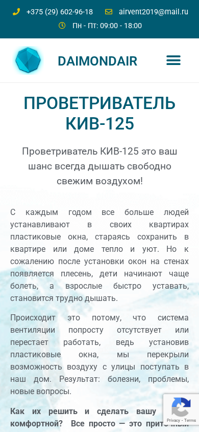 | SEO-описание | Проветриватель КИВ125 - это тепло и уют , чистый воздух,хороший сон,здоровый ребенок. Вентиляция, естественная вентиляция,Приточный клапан |