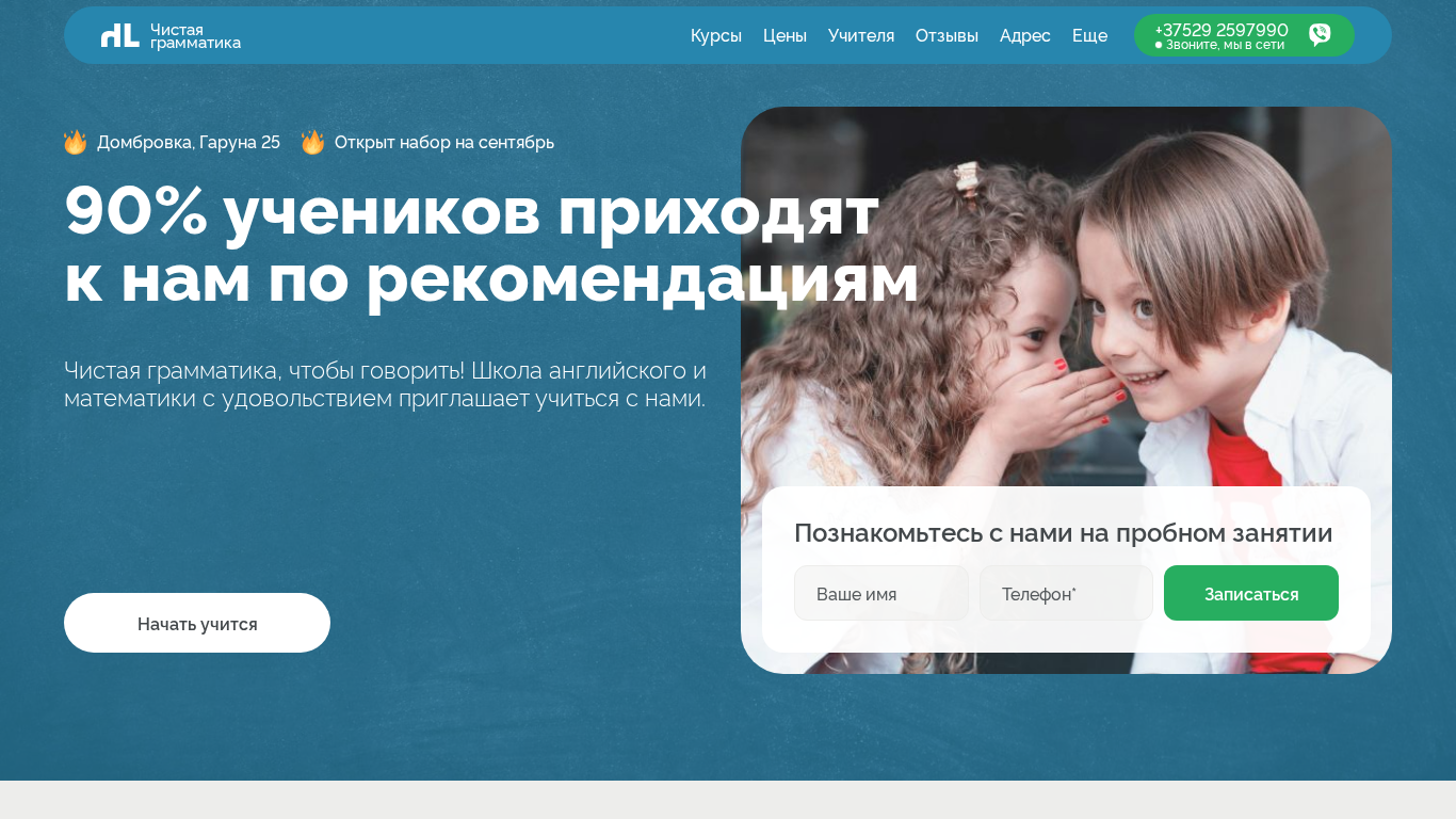 | SEO-описание | Школа Английского языка и математики для детей в Минске улица Гаруна 25. Помощь репетиторов для школьников. Особая методика обучения грамматике |