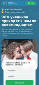 | AI-анализ | Проект веб-сайта "Чистая грамматика" (Clear Grammar) представляет собой образовательное учреждение для обучения английскому языку и математике для детей, расположенное по адресу улица Гаруна, 25. Здесь предлагается помощь от репетиторов для школьников и уникальный метод преподавания грамматики. Сайт предоставляет информацию о курсах, ценах, учителях и отзывах. Учебное заведение приглашает учащихся начать обучение и предлагает бесплатную пробную лекцию. Оно предлагает английские языковые курсы для школьников по тарифу 105 рублей в месяц, с уроками продолжительностью 45 минут два раза в неделю и восемь занятий в месяц, при этом максимальное количество учащихся ограничено восемью человеками. Также здесь предлагаются курсы информатики для школьников по тарифу 95 рублей в месяц, с уроками продолжительностью 60 минут два раза в неделю и восемь занятий в месяц, при этом максимальное количество учащихся ограничено восемью человеками. Курсы математики для школьников обходятся в 1 |