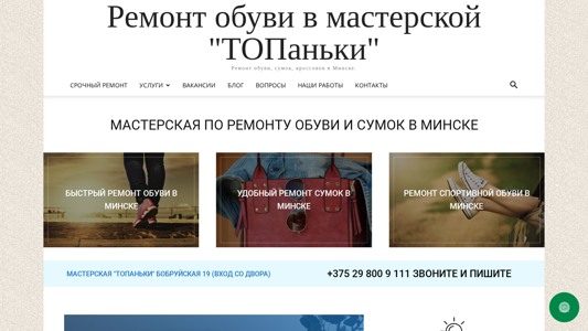| Название / Заголовок | Ремонт обуви в Минске - обувная ТОПаньки - все виды ремонта |