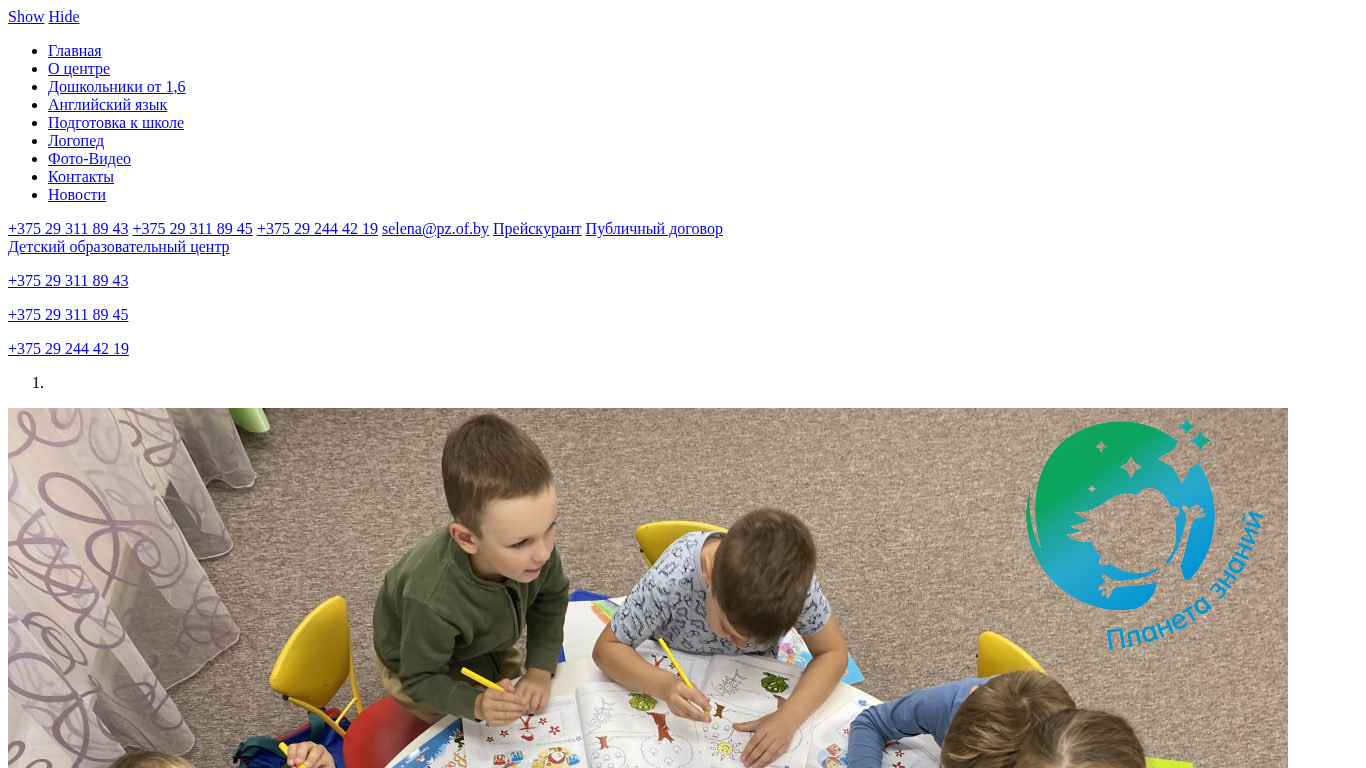 Портал является детским центром развития, расположенным в Минске, Беларусь, предлагающим услуги, такие как дошкольное образование для детей в возрасте 1.6, обучение английскому языку, подготовка к школе и логопедическая помощь. На сайте представлены разделы с фотографиями и видео, контактами и новостями. В разделе контактов указаны телефонные номера трех различных провайдеров, а также электронная почта. Центр акцентирует внимание на индивидуальном подходе, гибкости, высоком уровне культуры и теплом, любящем атмосфере. Посетители могут зарегистрироваться на пробный период или запросить звонок обратно, используя предоставленные телефонные номера или электронную почту. На сайте также представлена информация о стоимости, публичном контракте и вакансиях. Центр является частью образовательной сети "Планета Знаний" и включает ссылки на профили в социальных сетях.