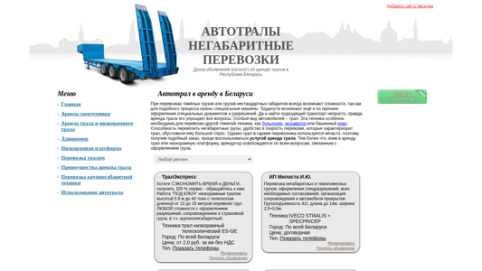 SEO-описаниеОбъявления об аренде тралов и услугах по перевозке не габаритных грузов в Беларуси. Перевозки длинномером и низкорамной платформой.