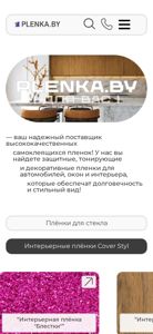 This online resource is a catalog for purchasing various types of self-adhesive films, including interior, protective, automotive, and toning films, in Minsk and Belarus. The contact information for the business is provided, including phone numbers +375 (29) 664-03-89, +375 (17) 512-28-90, and +375 (17) 512-28-91. The website offers a range of self-adhesive films for sale, including protective films A1, A2, and A3, which are widely used in administrative buildings on lower floors. The catalog also mentions the availability of specialized tools for professional film installation. The website includes a section for news and a product catalog with various types of solar screen films, such as Solar Screen 30,