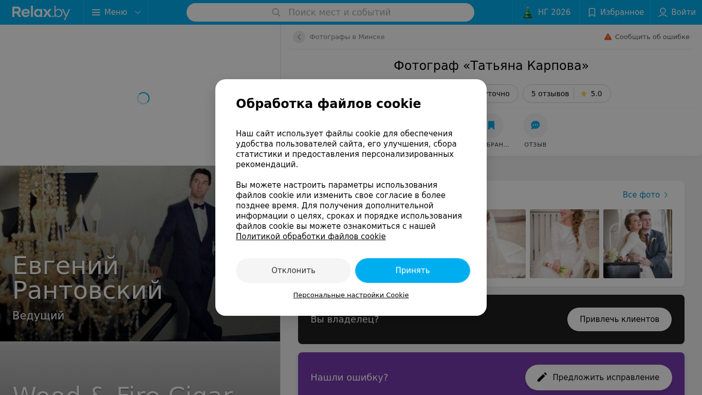 | SEO-описание | Фотограф Татьяна Карпова в Минске – отзывы, телефоны, график работы и карта проезда на Relax.by |