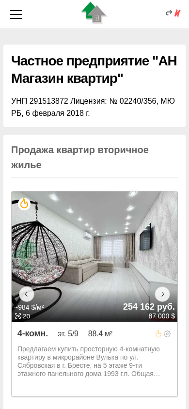 | Название / Заголовок | Частное предприятие "АН Магазин квартир" |