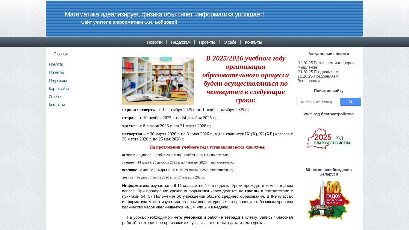 | Название / Заголовок | Математика идеализирует, физика объясняет, информатика упрощает! |