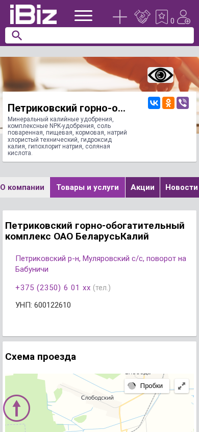 | Название / Заголовок | Петриковский горно-обогатительный комплекс ОАО БеларусьКалий - Минеральный калийные удобрения, комплексные NPK-удобрения, соль поваренная, пищевая, кормовая, натрий хлористый технический, гидроксид калия, гипохлорит натрия, соляная кислота.. 0, , Муляровский с/с, поворот на Бабуничи |