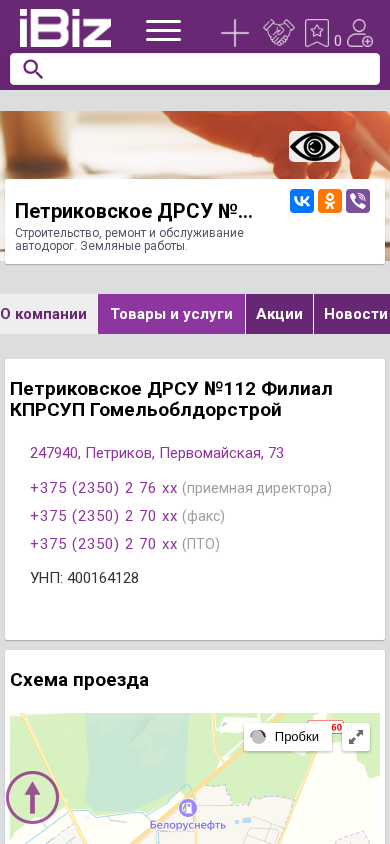| Название / Заголовок | Петриковское ДРСУ №112 Филиал КПРСУП Гомельоблдорстрой - Строительство, ремонт и обслуживание автодорог. Земляные работы.. 247940, Петриков, , Первомайская, 73 |
