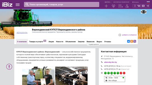 | Название / Заголовок | Верхнедвинский КУПСП Верхнедвинского района - Сельскохозяйственное предприятие. Производство молока, зерновых культур.. 211622, Верхнедвинск, , Чистополье д., Молодежная, 13 |