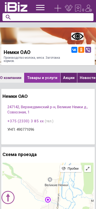 | Название / Заголовок | Немки ОАО - Производство молока, мяса. Заготовка кормов.. 247142, , Великие Немки д., Совхозная, 1 |