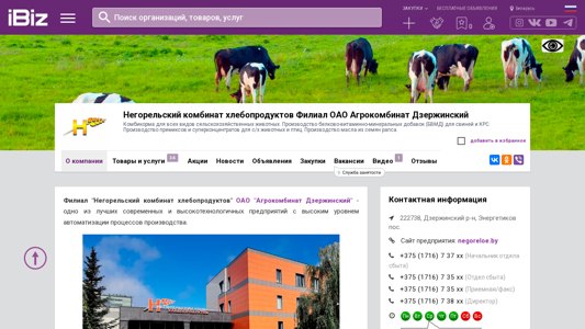 | AI-анализ | This website is a branch of the Agrocombinaat Dzerzhinsky, specializing in the production and sale of animal feed and feed additives for various types of farm animals, including pigs, cattle, birds, and rabbits. They also produce rapeseed oil. The company's address is in the Energytown settlement, 222738, Belarus. |
