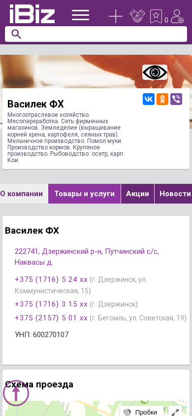 | Адрес | Василек ФХ, 222741, Дзержинский р-н, Путчинский с/с, Наквасы д., +375 (1716) 5 24 xx, (г. Дзержинск, ул. Коммунистическая, 15 |